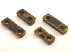 Cross-dovetail blocks Meant to go into a standard 3/8" x 60° barrel dovetail. The lower ones are either 3/16" or 1/4" high. The higher ones are duplicates of the Unertl BK, K and KK blocks - .365", .420", and .470" respectively. Provided with the brass set screw. I have some that are intentionally .005" larger, to be filed to fit. Price: $30.80 each |